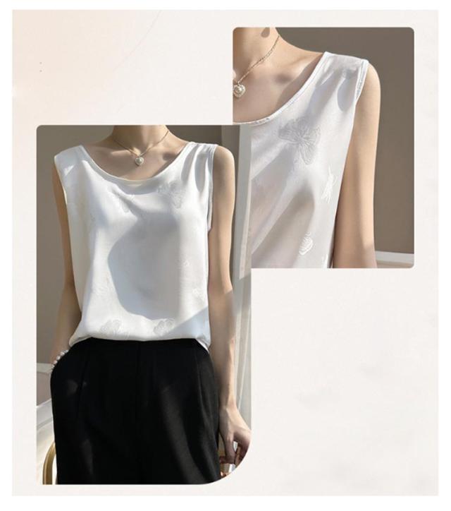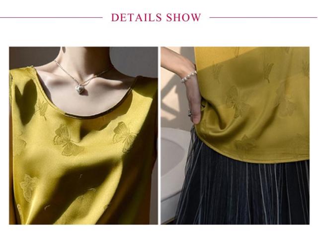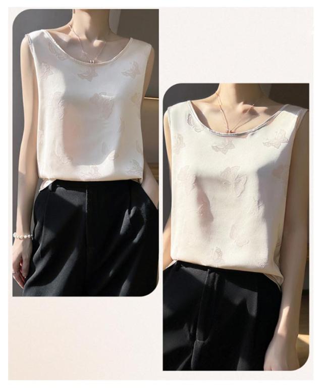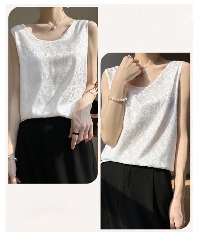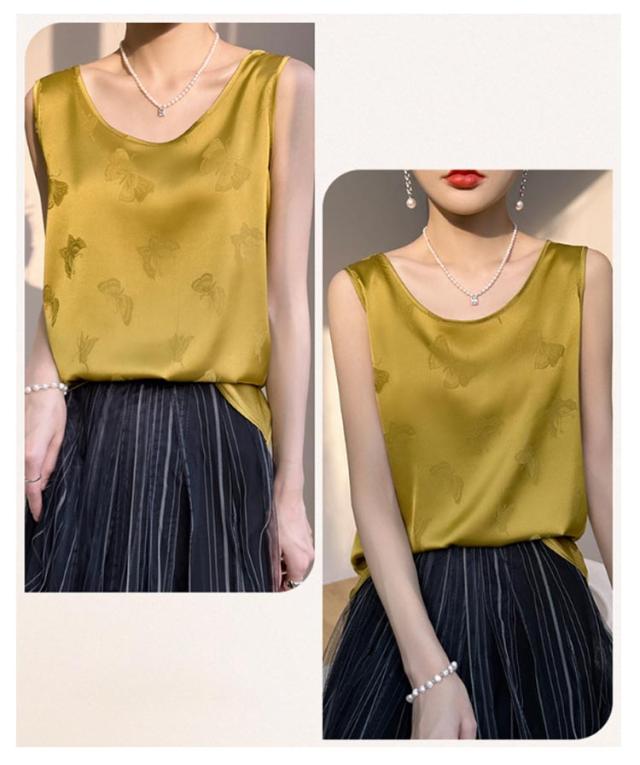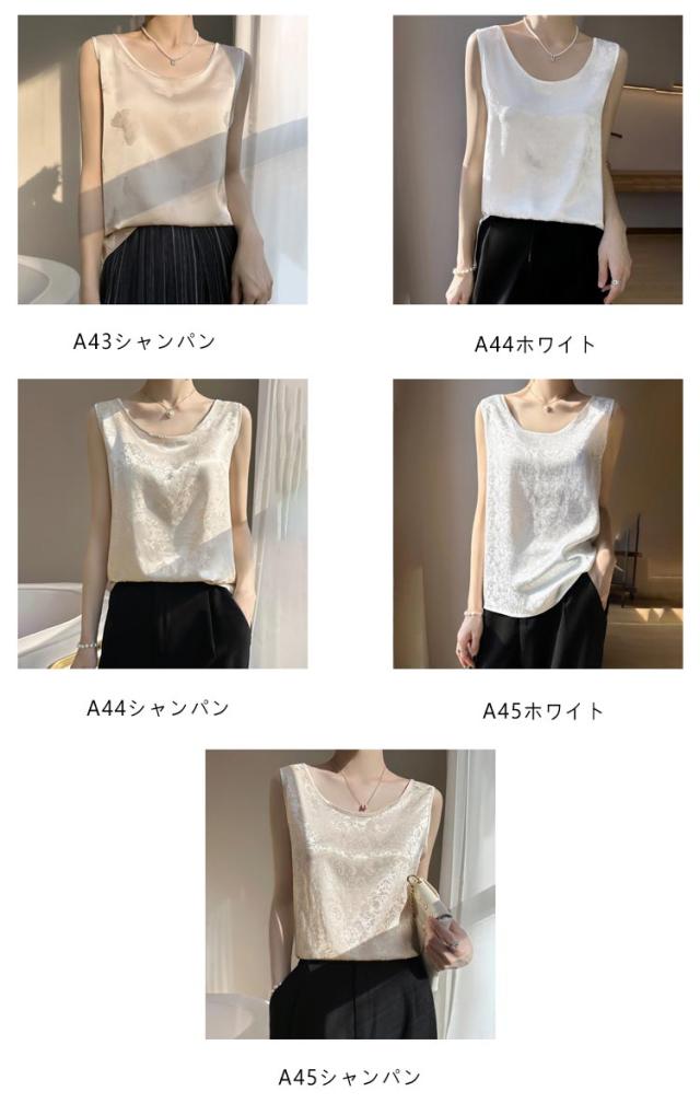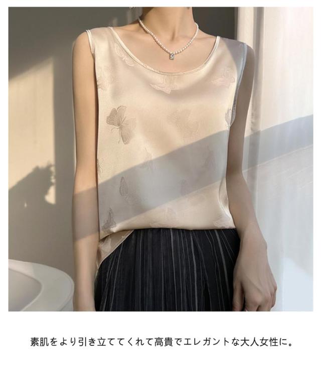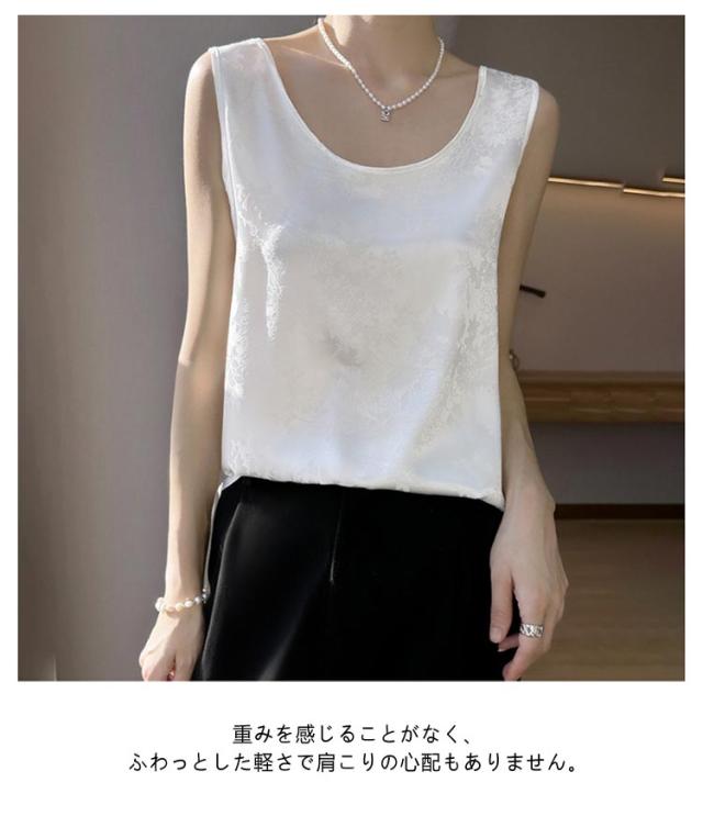 シャツ サテン ブラウス インナー レディース ショート丈 プリント シャツブラウス 柔らか 柄 大人 薄手 Uネック 光沢感 高級感 上品 ゆったり 重ね着 肌着 敏感肌 タンクトップ 透けない 楽チン 通気性 吸湿 刺?