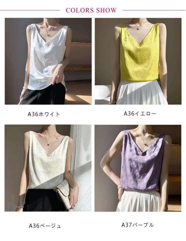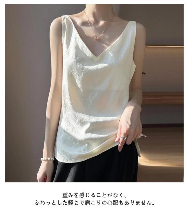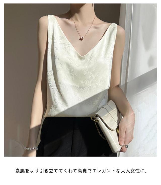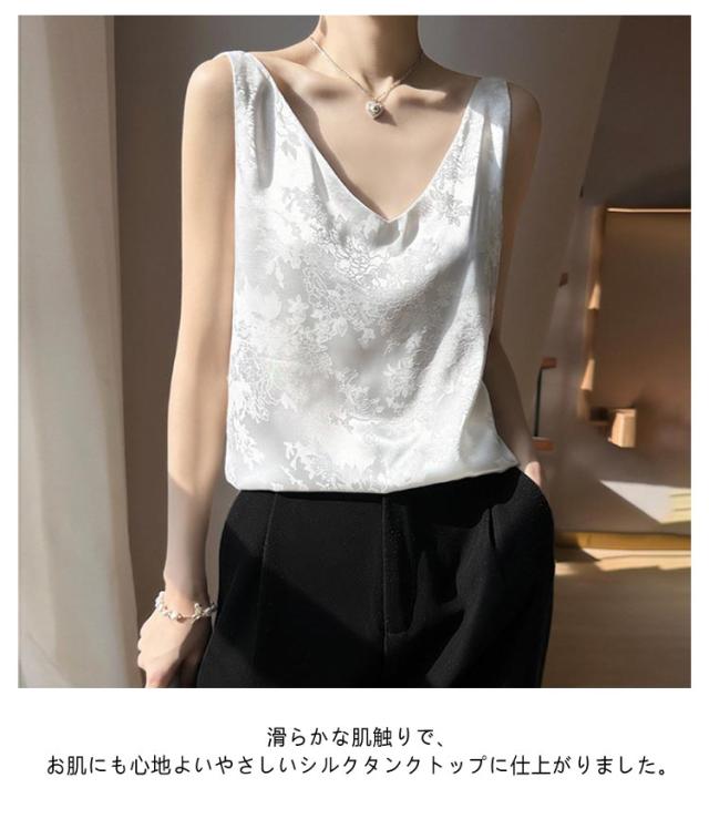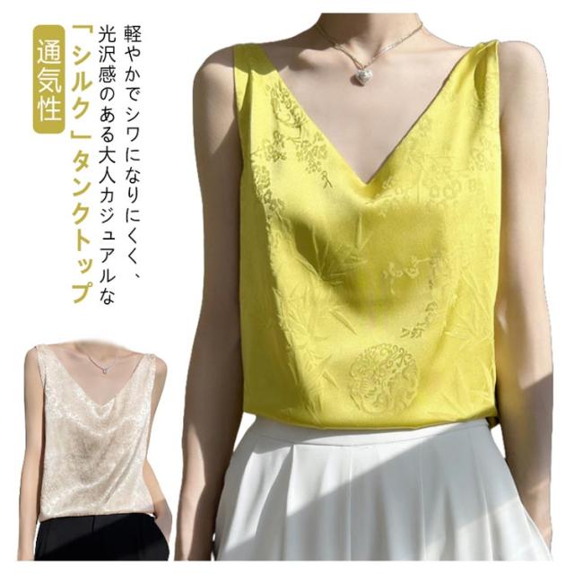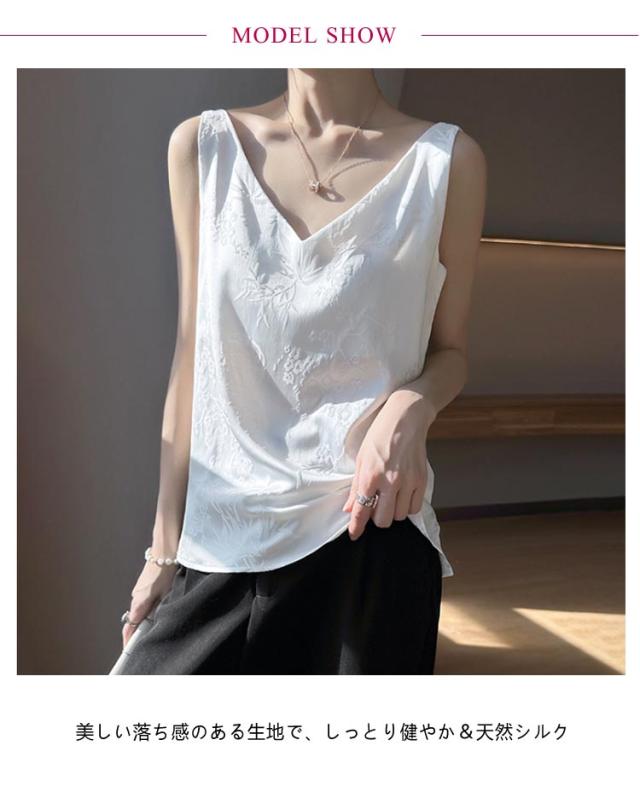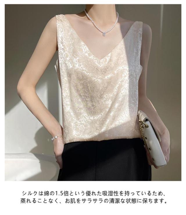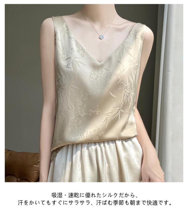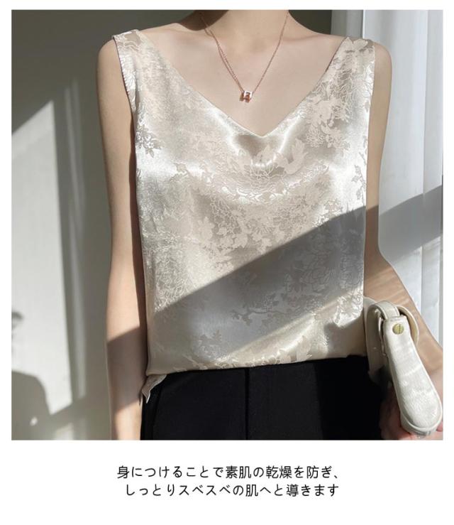 シルク キャミソール ノースリーブ ショート丈 刺? 光沢感 サテン シャツ キャミソール プリント 大きいサイズ ゆったり インナー 薄手 柄 レディース 高級感 上品 大人 重ね着 肌着 敏感肌 柔らか 透けない 楽チン 通気性 吸湿 タンクトップ