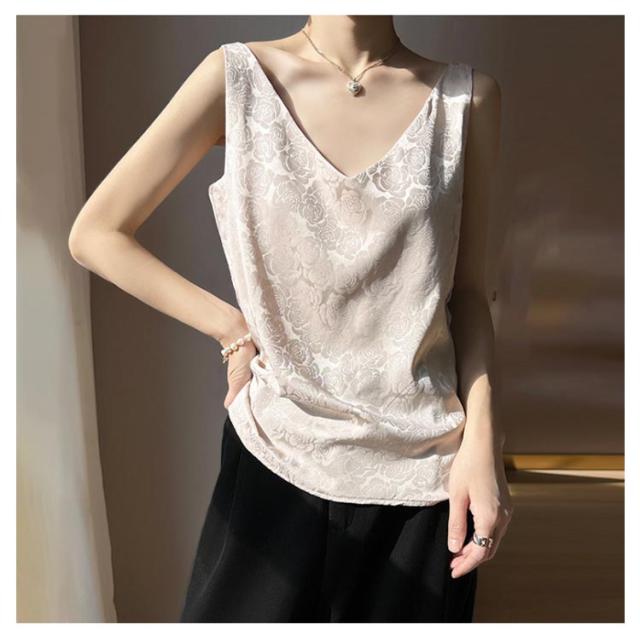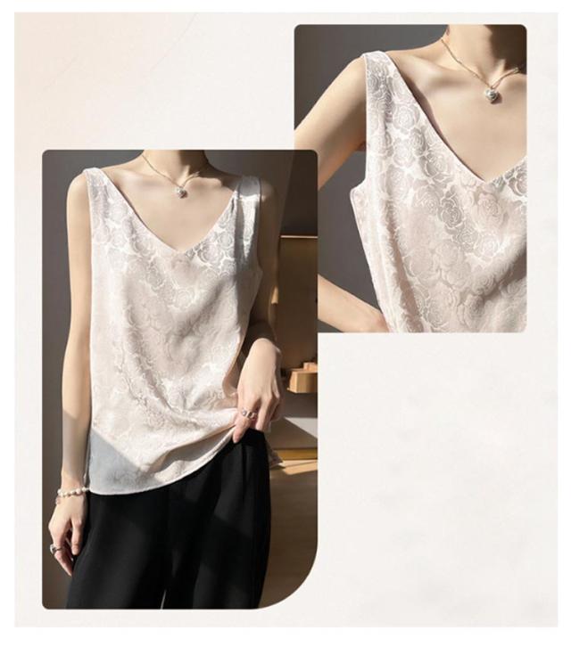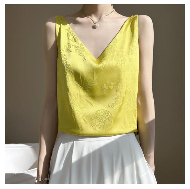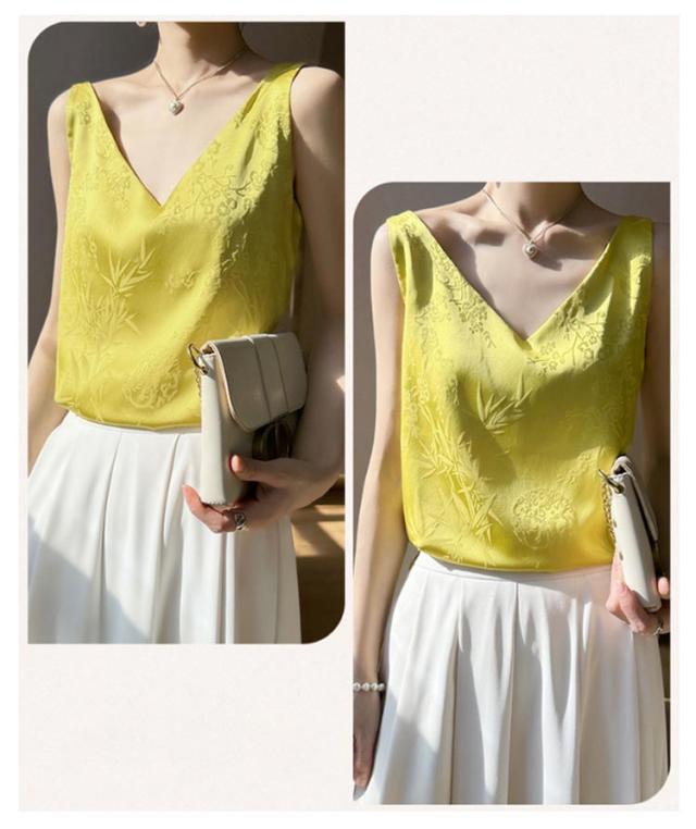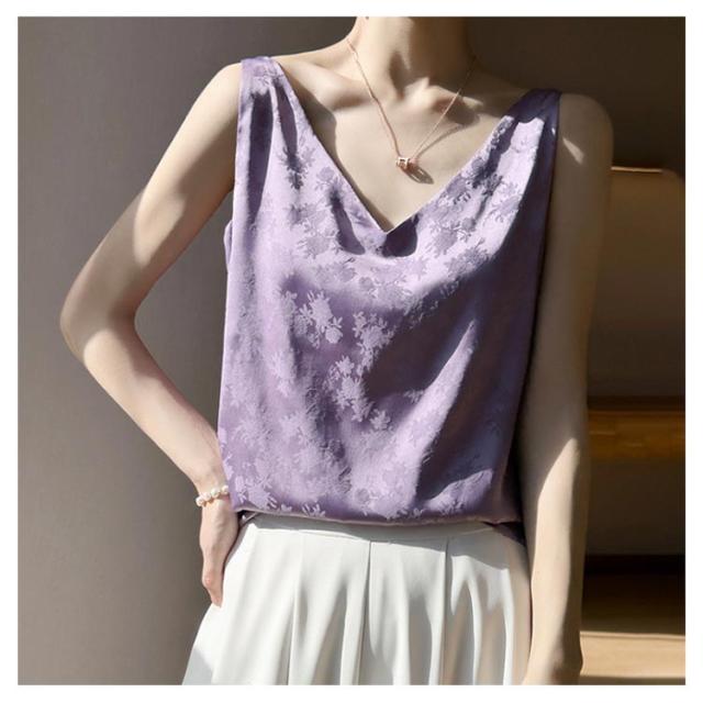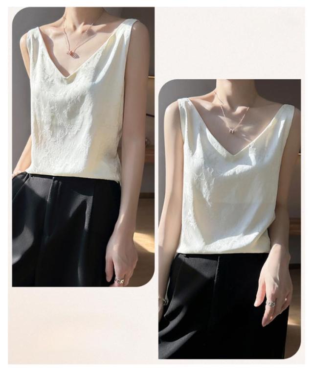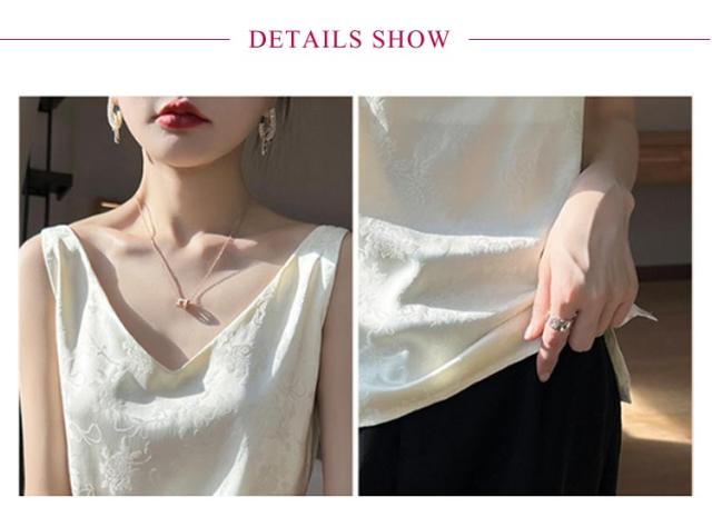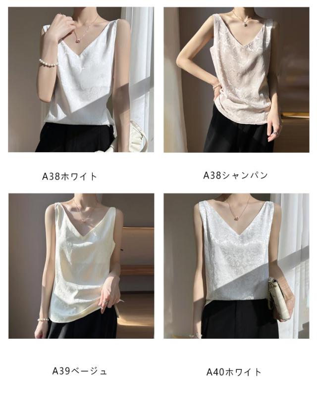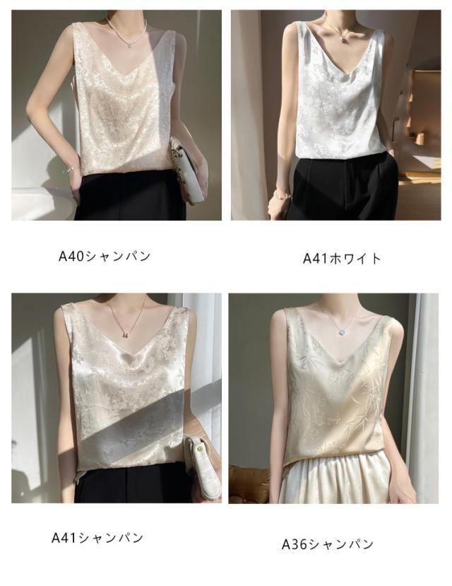 シルク キャミソール ノースリーブ ショート丈 刺? 光沢感 サテン シャツ キャミソール プリント 大きいサイズ ゆったり インナー 薄手 柄 レディース 高級感 上品 大人 重ね着 肌着 敏感肌 柔らか 透けない 楽チン 通気性 吸湿 タンクトップ