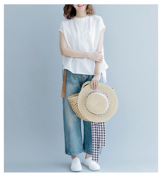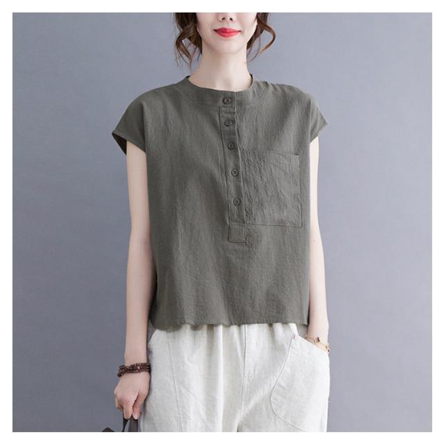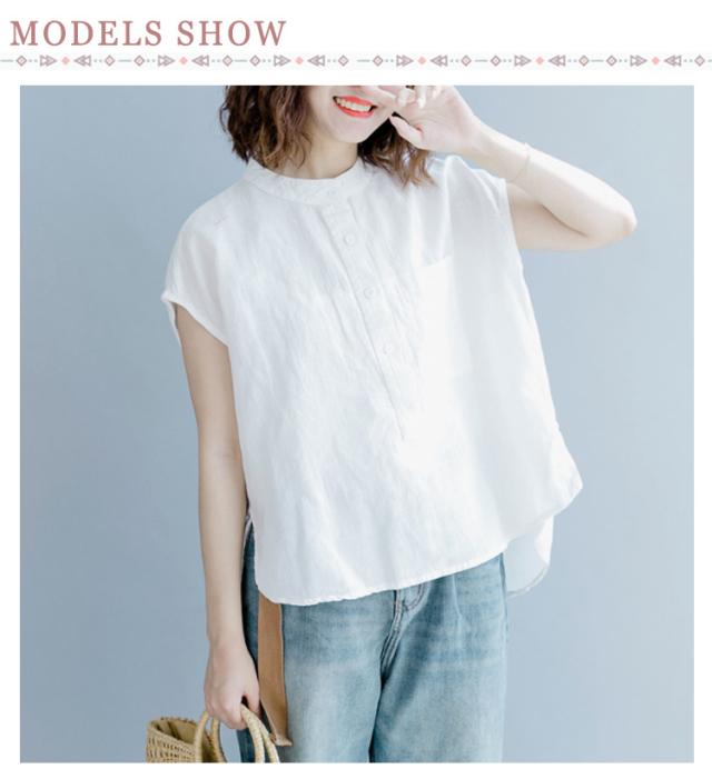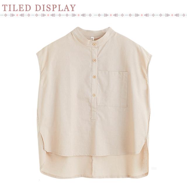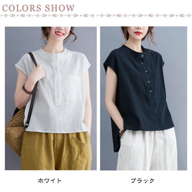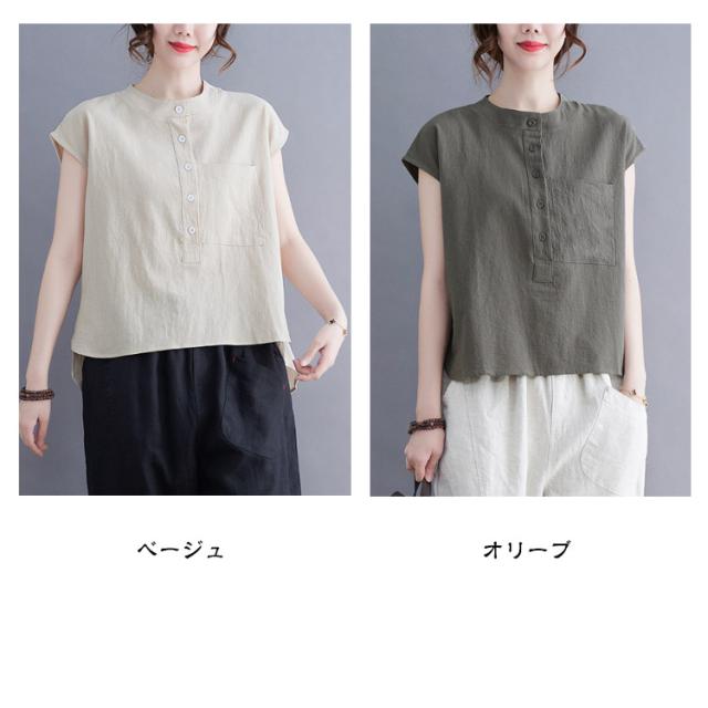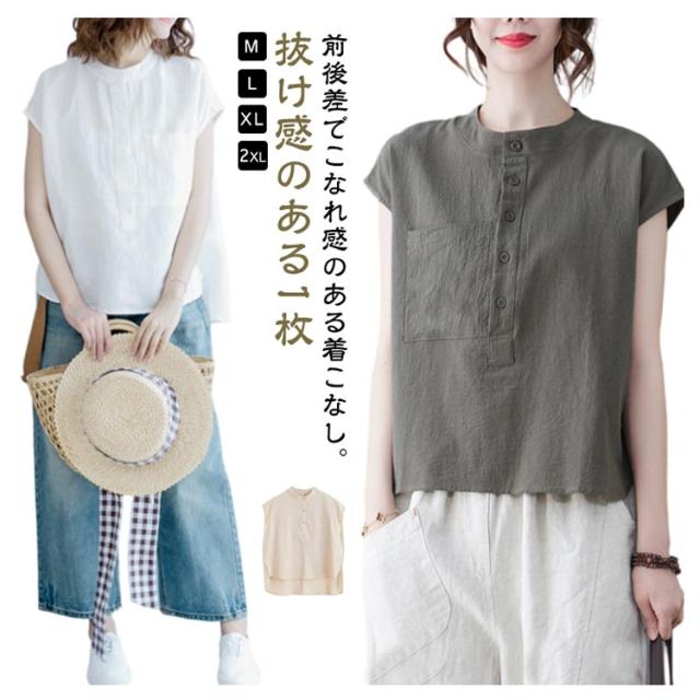 フレンチスリーブ シャツ ブラウス 前後差 レディース チュニックシャツ バンドカラー ブラウス トップス 無地 夏 夏服 袖なし 無地 抜け感 ブラウス OL 通学 綿麻調 きれいめ オフィスカジュアル 送料無料 20代 30代 40代 母の日 プレゼント