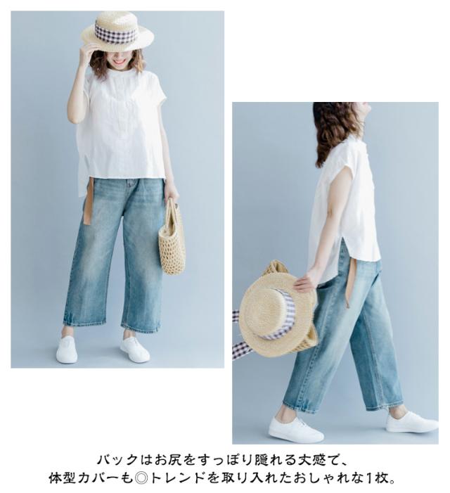 | 前後差でこなれ感のある着こなし。 フロントは短めでトップスインして、OUTしてもバランスよくスタイルアップ。 バックはお尻をすっぽり隠れる丈感で、体型カバーも◎トレンドを取り入れたおしゃれな1枚。 二の腕カバーできるフレンチスリーブ、手を細く見せ、着痩せ◎ おしゃれシンプルなデザイン、普段着はもちろん、ビジネスやフォーマルシーンにも頼りになるシャツです。 | |