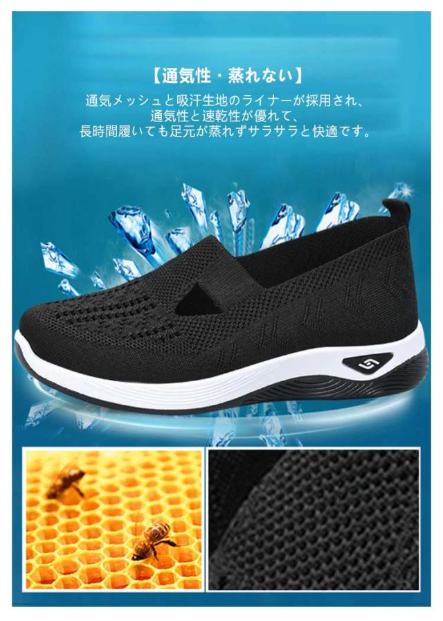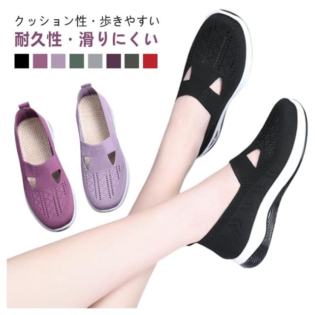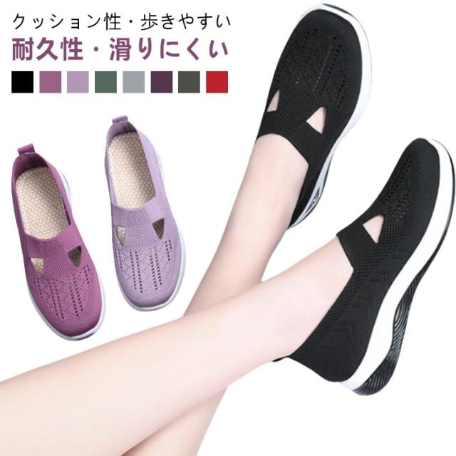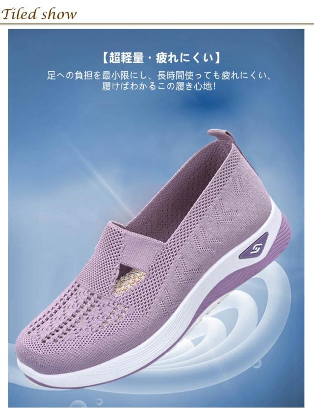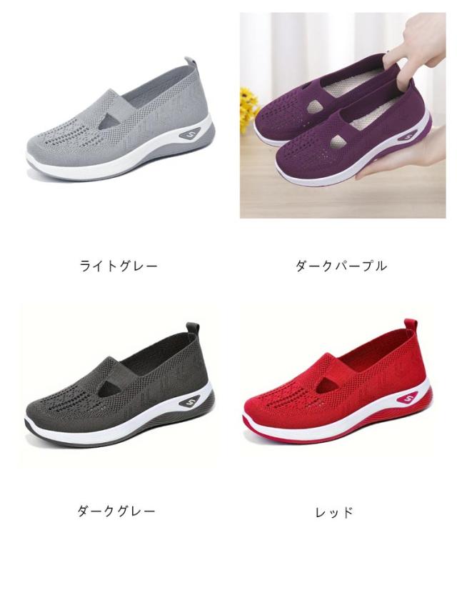 高年者 婦人靴 厚底 スリッポン スポーツシューズ ランニングシューズ レディース ニット メッシュスニーカー 軽量 シューズ 運動靴 ウォーキングシューズ 幅広 大きサイズ 歩きやすい 春 夏 秋 送料無料