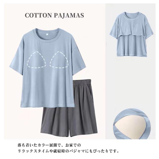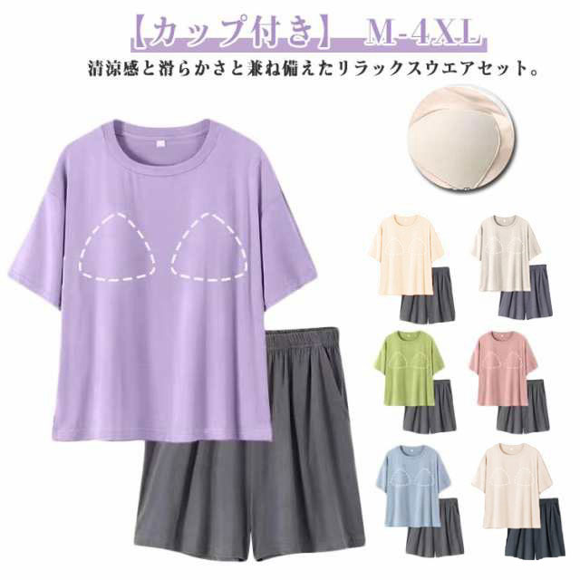冷感 ルームウェア レディース 夏 セットアップ カップ付き パジャマ 半袖 Tシャツ パンツ ショートパンツ 可愛い 部屋着 上下 セット 短パン 寝巻き 寝間着 ナイトウェア 夏用 2点セット 薄手 涼しい アイスシルク ゆったり 【送料無料】