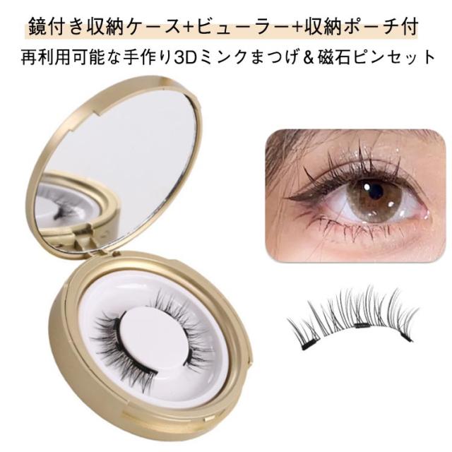 | 再利用可能な手作り3Dミンクまつげ&磁石ピンセット 鏡付き収納ケース+ビューラー+収納ポーチ付 | |