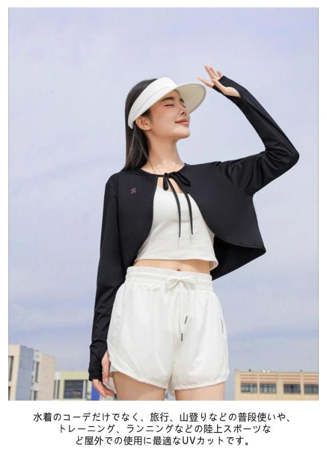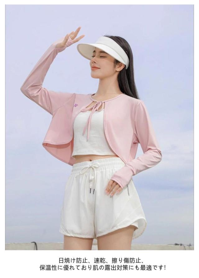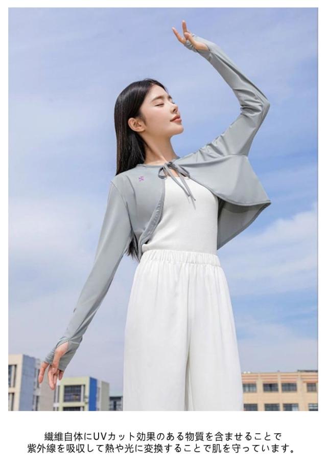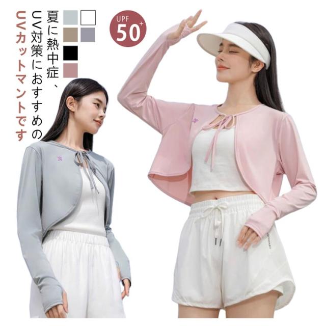 ケープ UVカット マント 冷感 ポンチョ UPF50+ レディース UV パーカー ラッシュガード 長袖 ライトアウター ショート丈 ゆったり 風通し 日よけ カーディガン アームカバー 着る 指穴 リボン トップス 体型カバー ボレロ 吸汗 速乾
