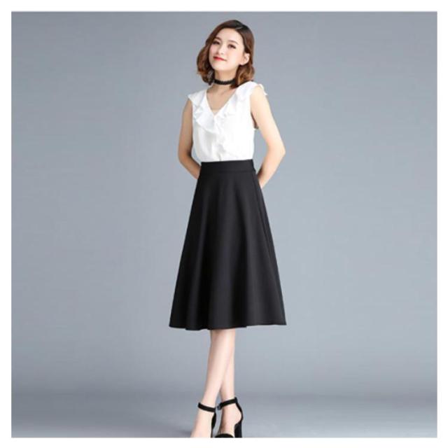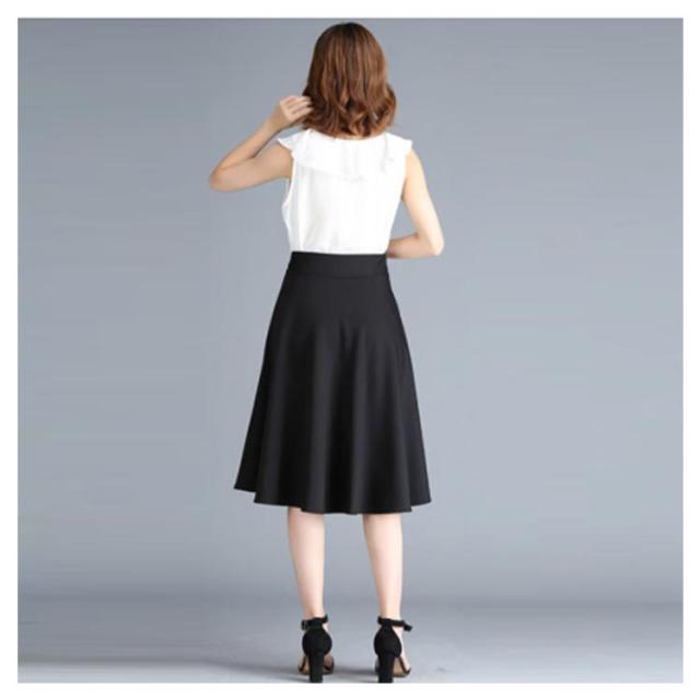 フレアースカート レディース 事務 制服 スカート 65CM丈 ひざ丈スカート ポケット付き 膝丈 企業制服 仕事 仕事 オフィス ユニフォーム ブラック