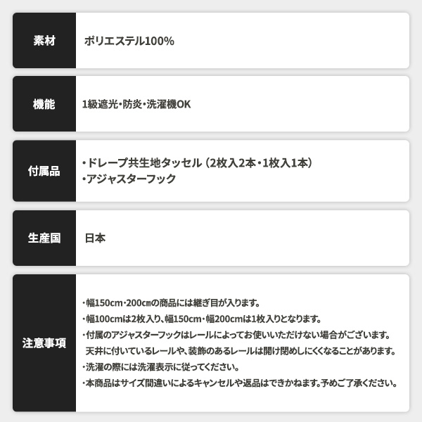 1級遮光・防炎・洗濯機OK