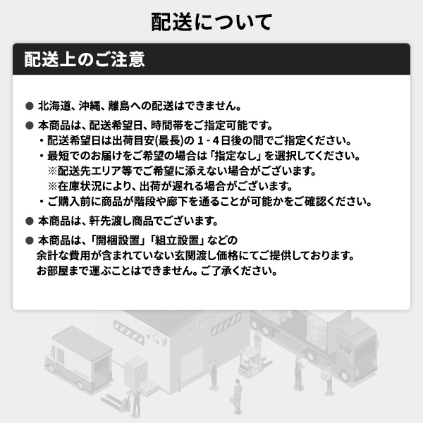 ※沖縄県・離島への配送をご希望の場合は配送を承ることが出来ません。ご注文はキャンセルとなります。但し、大型商品の場合など、追加の配送費用がかかることが判明した場合、ご注文後に追加送料がかかる旨のご連絡をさせて頂く場合ございますので予めご了承下さい。沖縄県・離島への配送や大型商品をご希望の場合、送料は自動計算されませんので、ご注文確認後、メールにてご連絡の上、送料の訂正を行わせて頂きます。