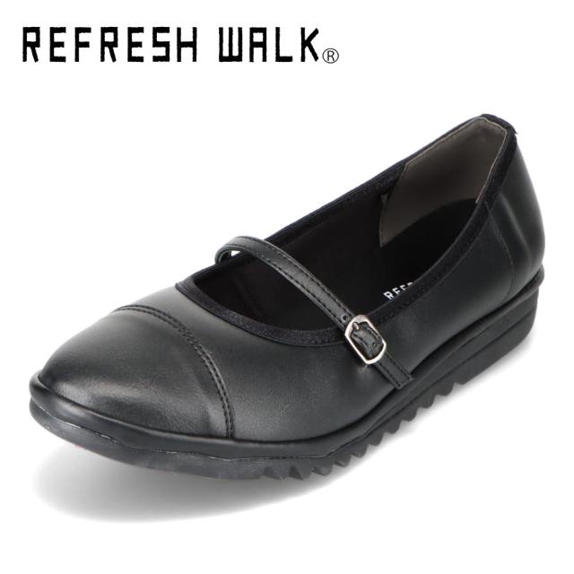 リフレッシュウォーク REFRESH WALK KK1484 3E相当 ストラップパンプス 軽量 軽い フラットシューズ 履きやすい 歩きやすい カップインソール 柔らかい ブラック