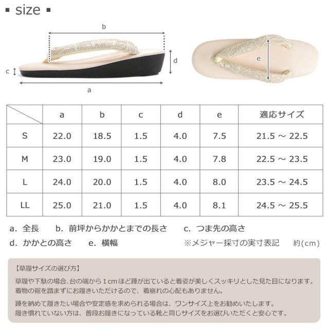 草履の裏面は滑りにくい凹凸加工が施されており、お天気のすぐれない日でもお着物を楽しんでいただける、頼もしい一足となっております。
