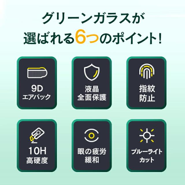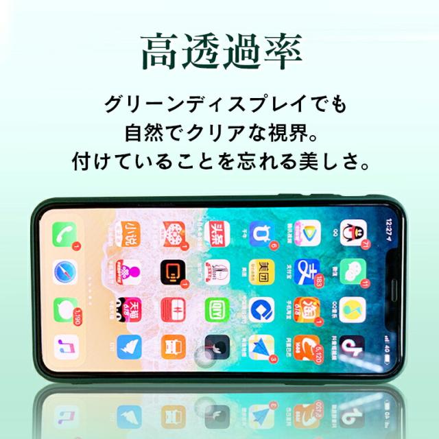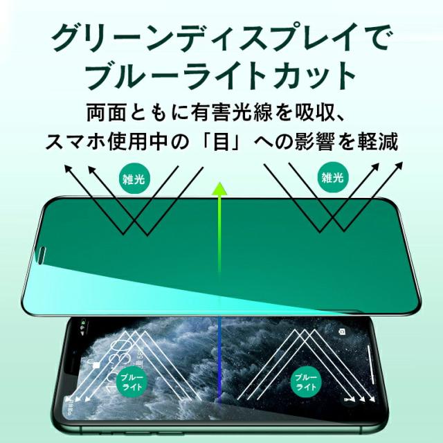 iPhone グリーンガラスフィルム ブルーライトカット 全面 保護フィルム
