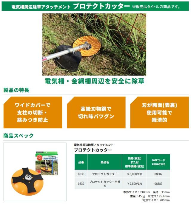 三陽金属 0838 プロテクトカッター 電気柵周辺除草アタッチメント SANYO METAL ’
