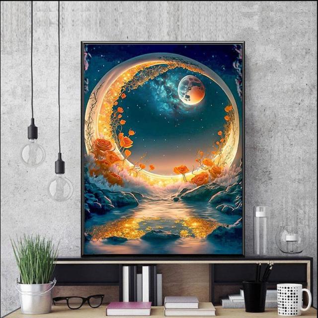 5D ダイヤモンドアート 花 月 バラ ローズ 植物 癒し キット ビーズ 絵画 人気 簡単 DIY 手作り 大人 子供 部屋 初心者 アート 送料無料
