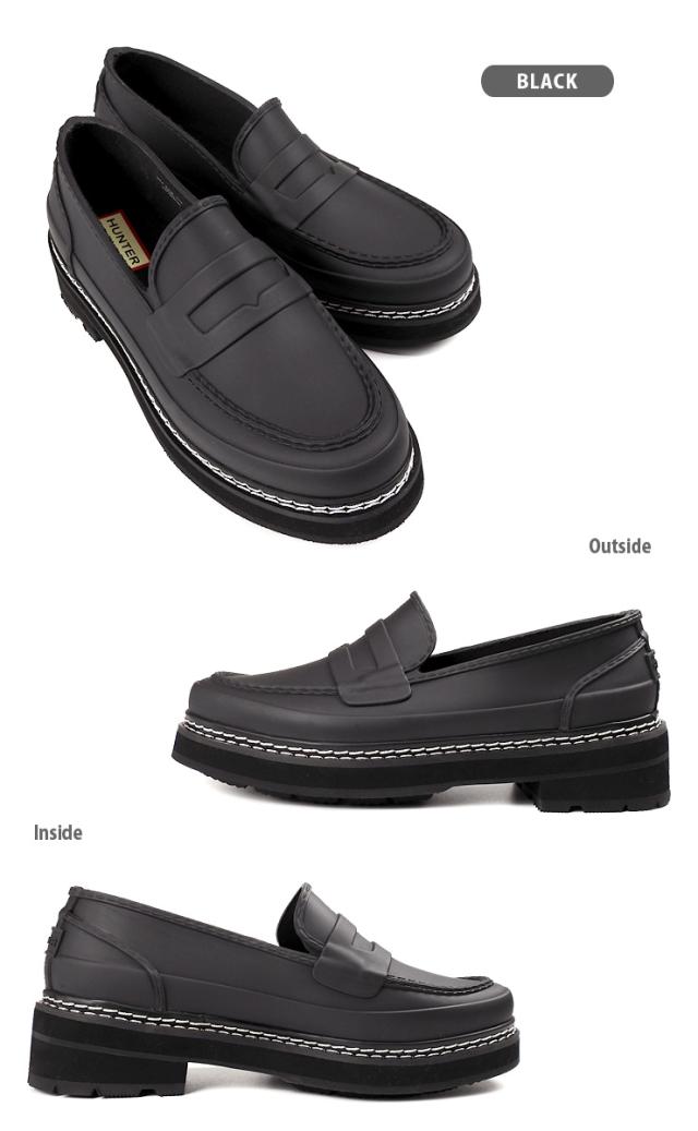 HUNTER REF STITCH PENNY LOAFER レインローファーシューズ レディース ブラック 23 24 25 ハンター 防水 防雪 無地 No.sh1935