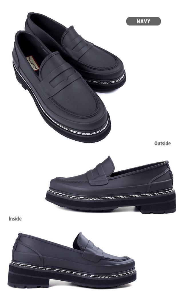 HUNTER REF STITCH PENNY LOAFER レインローファーシューズ レディース ネイビー 23 24 25 ハンター 防水 防雪 無地 No.sh1936