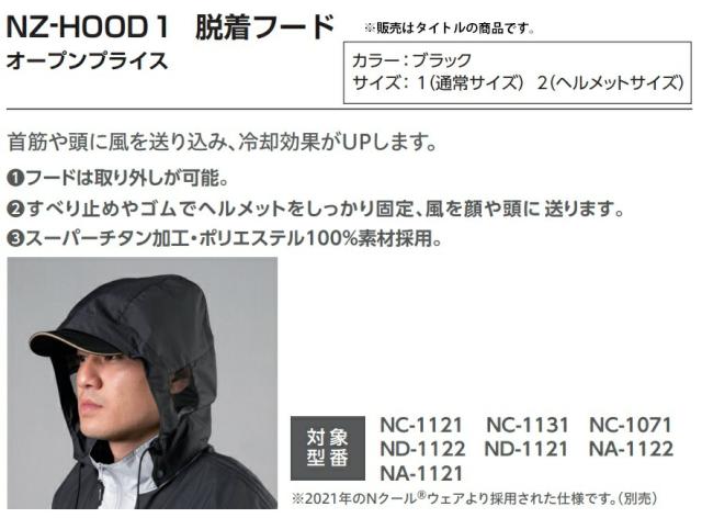 NZ-HOOD1 サイズ2 ブラック 脱着フード ヘルメットタイプ Nクールウェア用 8212633 NSP ネコポス 在庫