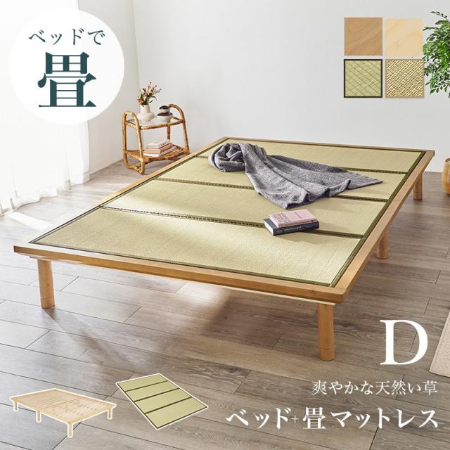畳ベッド ベッド ダブルサイズ 150x210cm 敷き布団が使える 天然い草の畳ベッド すのこフレーム 畳マットレスセット 高さ調節3段階