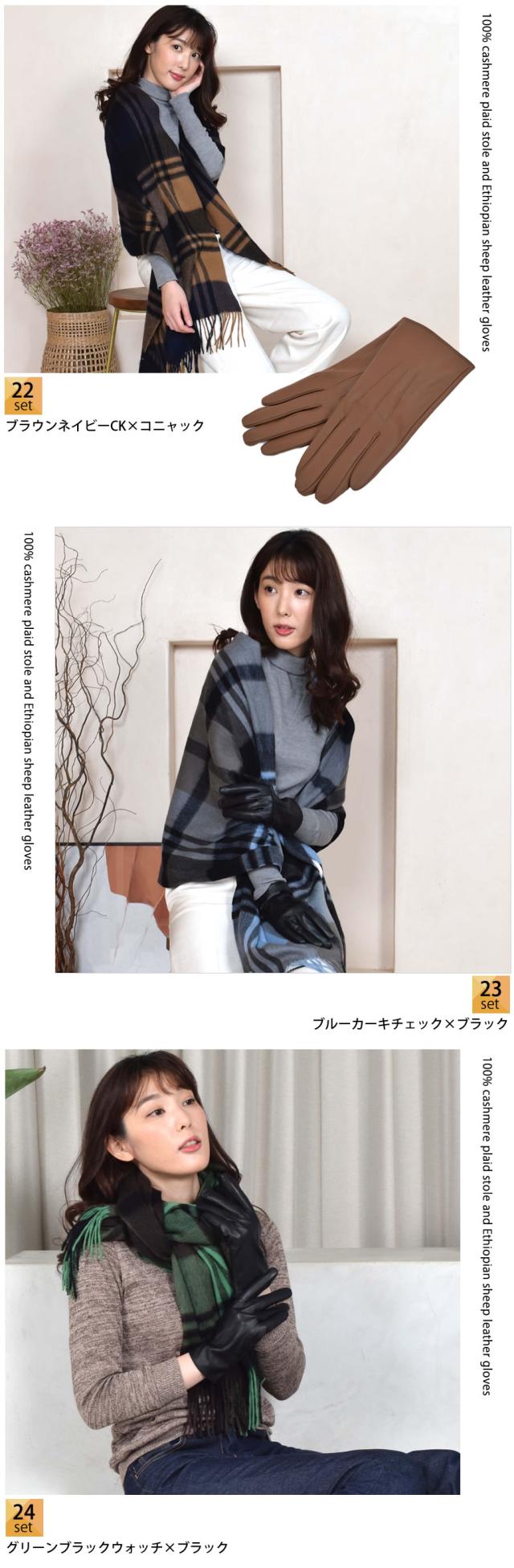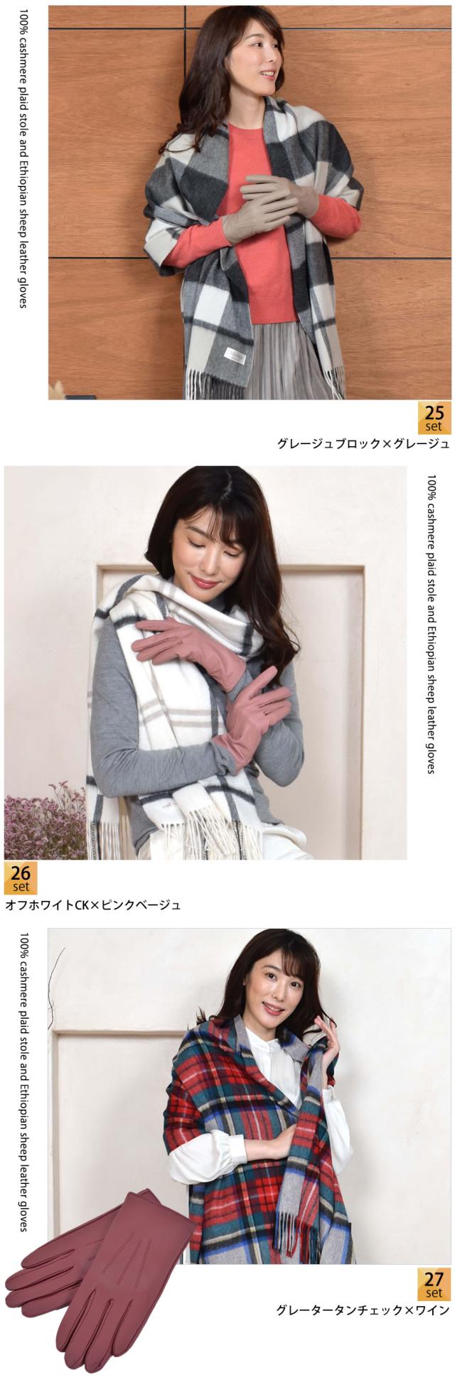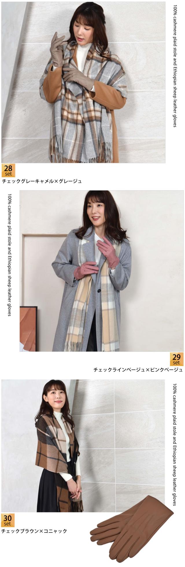 カシミヤ100%チェック柄ストールとエチオピアシープのレザー手袋がクリスマス限定ギフトセットになって登場!!