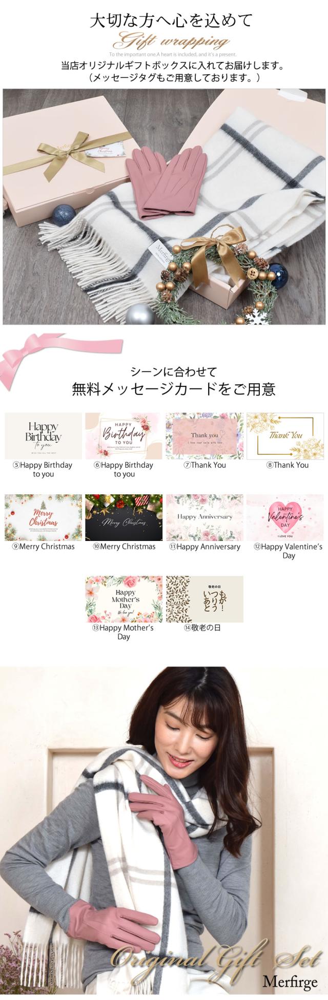 [Merfirge] カシミヤ 100% チェック柄 ストール & レザー 手袋 エチオピアシープ 本革 クリスマス ギフトセット(xs1225)