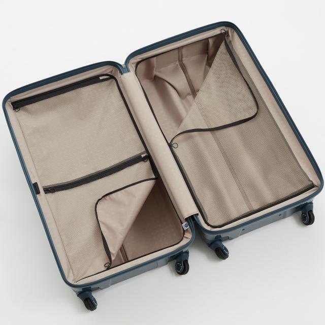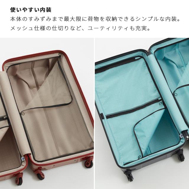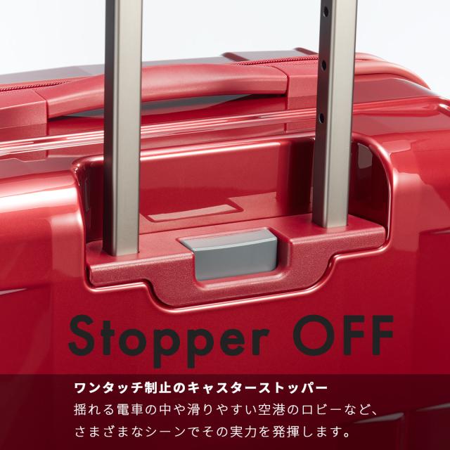 | - フルスペックで堪能する大容量。 軽量・丈夫さに加え、高い収納力やキャスターストッパー機能、キャスターの静音性を兼ね備えた、高機能スーツケース。よりスムーズな走行と納得の大容量で、あなたの旅を心地よくサポートします。インバウンドからご要望の多いトランクサイズが仲間入り致しました。シェルのリブ形状と鏡面加工が相まって、高級感のあるデザインに仕上がりました。 【ボディ】 軽量かつ堅牢なボディに、便利な機能を搭載したフルスペックモデル。傷が付きにくい凸型リブデザインのボディシェルを採用。 【素材】 本体素材に耐衝撃性に富んだ、ポリカーボネートとABS樹脂の混合素材を採用。 【サイズ】 10日間以上の旅行や出張に適したサイズ。総外寸157cm以内。手荷物を無料で預け入れできる国際基準サイズ対応の大容量。 【自社開発のサイレントキャスター&ベアロンホイール】 キャスターには体感音量を大幅に削減した「サイレントキャスター®」に加え、なめらかな走行を実現したベアリング内蔵の「ベアロンホイール®」を採用。 【マッジクストップ】 独自開発のストッパー機能『マジックストップ』を搭載。手元のスイッチで簡単に操作でき、不意な走行を防ぐキャスターストッパー機能を搭載。 【TSダイヤルロック】 カギの持ち歩きが不要な3ケタのダイヤル式TSロックを装備。施錠したまま預け入れ可能。 【パーツ】 本体色と同色のパーツを採用 【ハンドル】 ナナメ形状で握りやすいピックアップハンドル 【Made in Japan】 安心と信頼の日本製 |