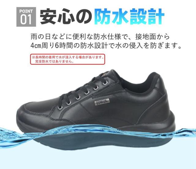 ・靴内部に透湿・防水フィルムを内蔵。さらに縫製部分には防水テープを施し「接地面から4cm×6時間」の高い防水性能を実現。急な雨や雪の日にも大活躍。