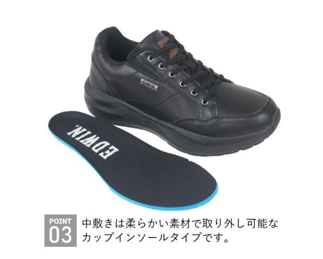 EDWIN エドウィン スニーカー メンズ 幅広 定番 ローカットスニーカー フラットシューズ カジュアルシューズ 紐靴 ひも靴 運動靴 蒸れにくい 防水 撥水 軽い 軽量 やわらかい 柔らかい 厚底 通気性 クッション 通勤 通学 雨の日 父の日 fkedw7368