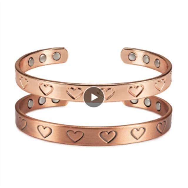 純銅磁気ブレスレット、ヴィンテージハート調節可能、高磁石のカフブレスレット、女性のサイズ変更可能なジュエリー、8mm ストレス解消 痩身減量 エネルギーマグネット付きの磁気ブレスレット エネルギー、ヨガ、減量、疲労、緩和療法、瞑想 癒しの純銅磁気