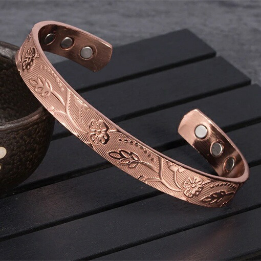 女性用純銅ブレスレット、調節可能な手錠、高磁石、磁気花、ソフトメタル、女性用ジュエリーギフト、10mm エネルギーマグネット付き ストレス解消 痩身