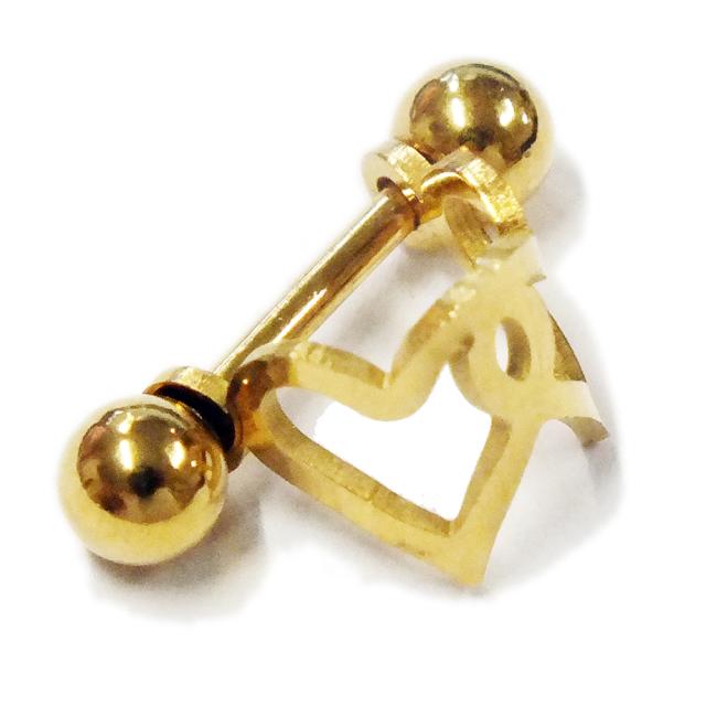 ペアハートシールド 1個販売 ヘリックスピアス オープンハート 2個 ダブル 16ゲージ 16G ボディピアス ストレートバーベル サージカルステンレス316L 軟骨ピアス ヘリックス トラガス レディース ゴールド 金メッキ プレゼント 女子 オープンハート プレゼント つけっぱなし