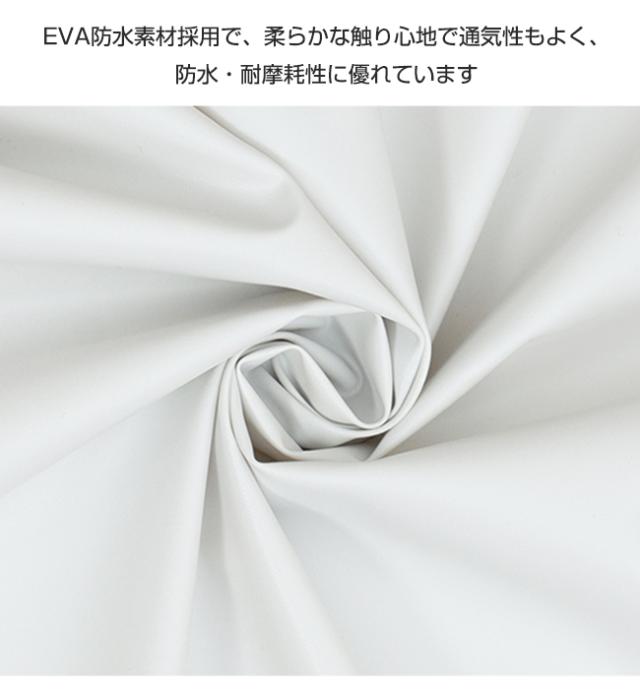 EVA防水素材採用で、柔らかな触り心地で通気性もよく、防水・耐摩耗性に優れています