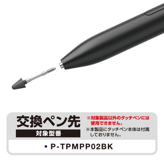 アクティブタッチペンP-TPMPP02BK専用の交換ペン先です。導電性に優れたポリアセタール樹脂(POM)を採用。ペン先が約1.0mmと極細なので繊細な描き込みができます。