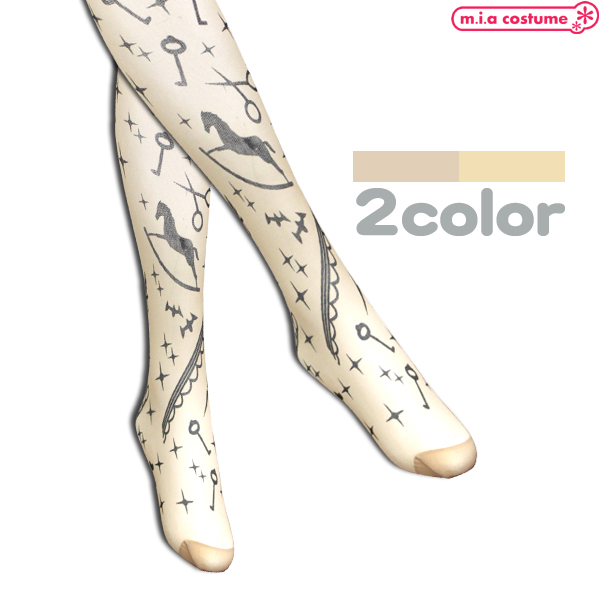 1258F■【送料無料・即納】B品 木馬とレース タトゥーストッキング 色:ベージュ/オークル サイズ:S-XXXL コスプレ ロリータ 可愛い デイリー 普段使い 撮影会