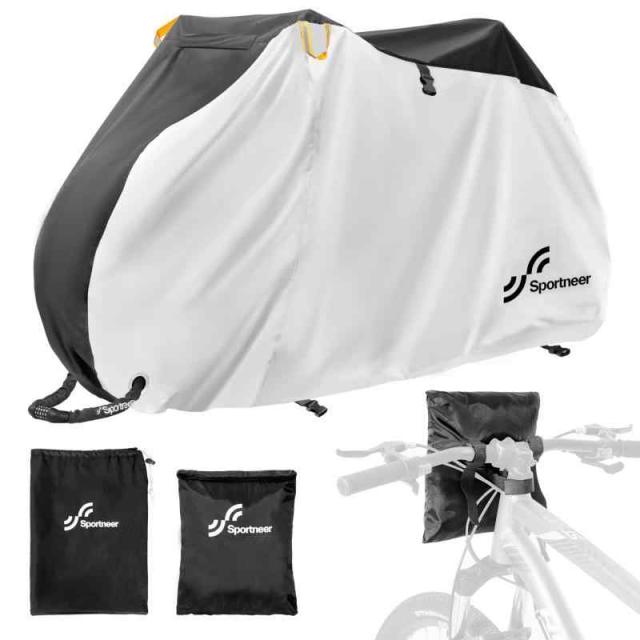 【便利な固定収納/携帯機能】Sportneer自転車カバーは収納袋付きだけではなく、自転車のヘッドに掛けて直接収納もできます。初めの一度取り付けるだけで済み、使用しない時はヘッドに掛けて、使う時にいつでもどこでも開くことができ、保管が非常に便利で、持ち運びの問題を心配する必要がなくなりました。