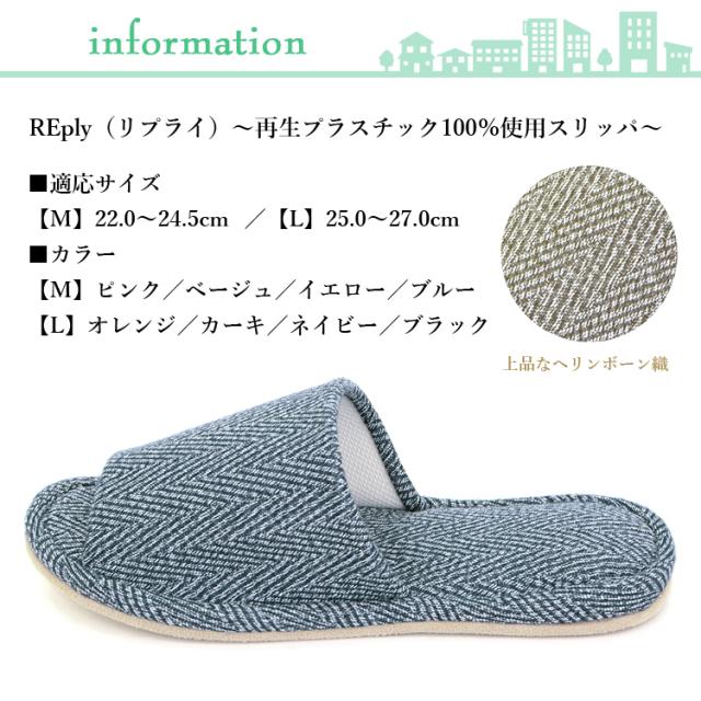 プラスチック再生 スリッパ 洗える エコ SDGs REply リプライ ヘリンボーン 外縫い 前空き おしゃれ メンズ レディース 来客用 春夏用 秋冬用 オールシーズン ルームスリッパ 軽くて柔らか 部屋履き 再生プラステック100%のスリッパです! agesugi_snk