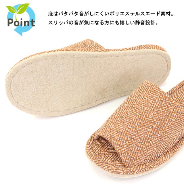 底はパタパタ音がしにくいポリエステルスエード生地。スリッパの音が気になる方にも嬉しい小音タイプです。