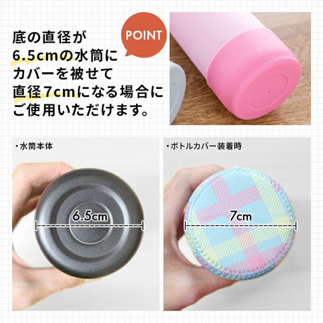 底の直径が6.5cmの水筒にカバーをかぶせて7cmになる場合にご利用いただけます。