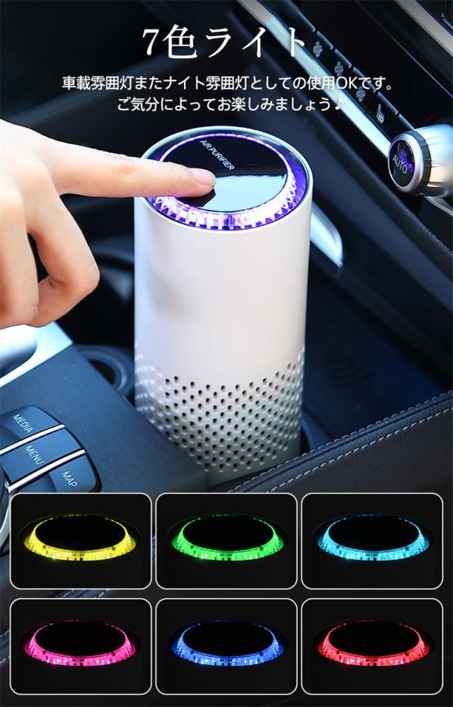 空気清浄機 6畳対応 省エネ ホコリ 微小粒子 アロマ対応 静音設計 除菌 脱臭 タバコ 煙 車載 マイナスイオン 7色ライト USB給電式