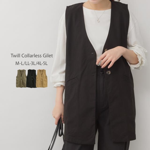 春新作 大きいサイズ レディース ツイルノーカラージレ ベスト ノースリーブ レイヤード 大きいサイズ レディース