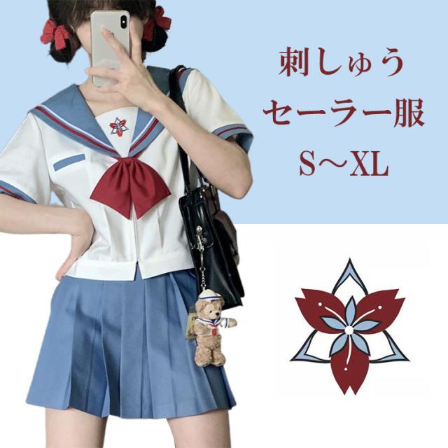 商品名 セーラー服 レディース 配色 トップス 上下セット 刺しゅう 刺繍 スクールウェア 制服 ショート丈 スカーフ