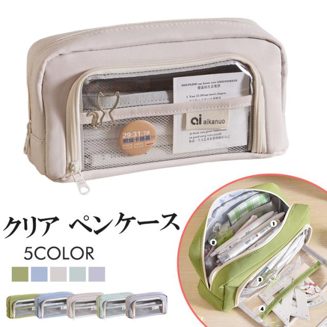 メイクケース 化粧品 クリア 筆箱 収納 透明 中学生 高校生 女子 男子 かわいい 子供 学生 大人 韓国 通学 通勤