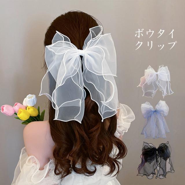 商品名 ヘアクリップ レディース ヘアアクセサリー リボン メッシュ チェール ボウタイ シンプル 可愛い おしゃれ