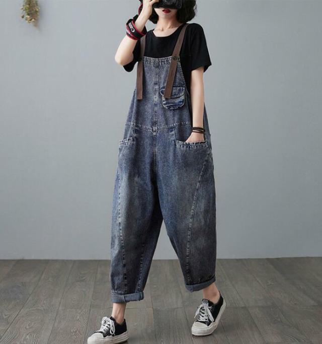 春 秋 夏 サロペット レディース ブルーデニムサロペット オールインワン 大人可愛い 大きいサイズ ゆったり サルエルパンツ
