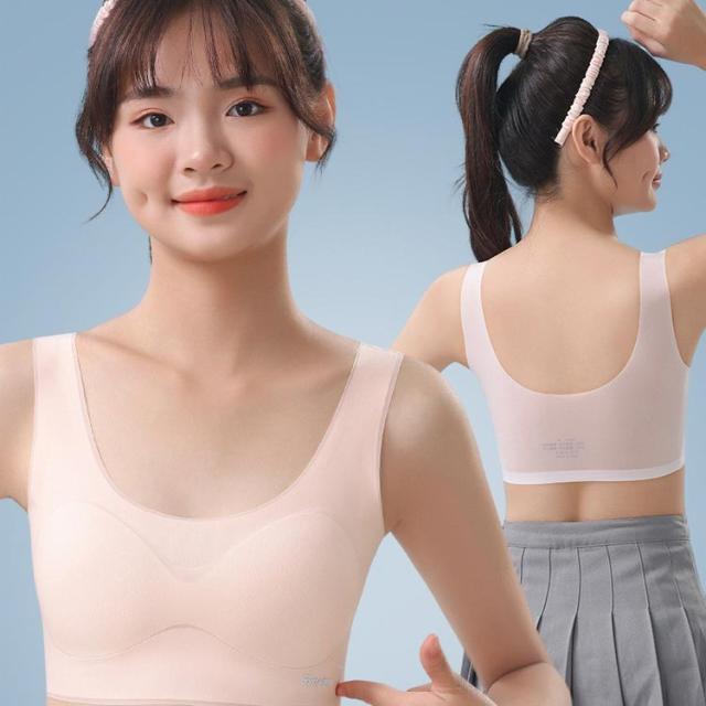 ノンワイヤーで締め付け感が少なく、ふくらみ始めるバストにオススメの違和感が少ない柔らかい肌あたり。伸縮性もあり成長期ティーンズのバストに自然になじむ。