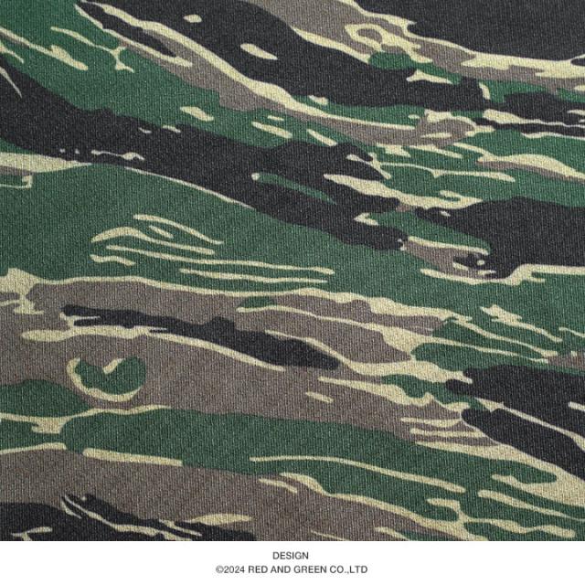 タイガーカモは、タイガーストライプともいわれ1960年から70年代にかけてアメリカ軍がベトナム戦争で採用したジャングル戦用の迷彩柄です。その名の通り(虎の縞模様)の意で、ジャングルに暮らす虎の模様から発想を得て開発されました。