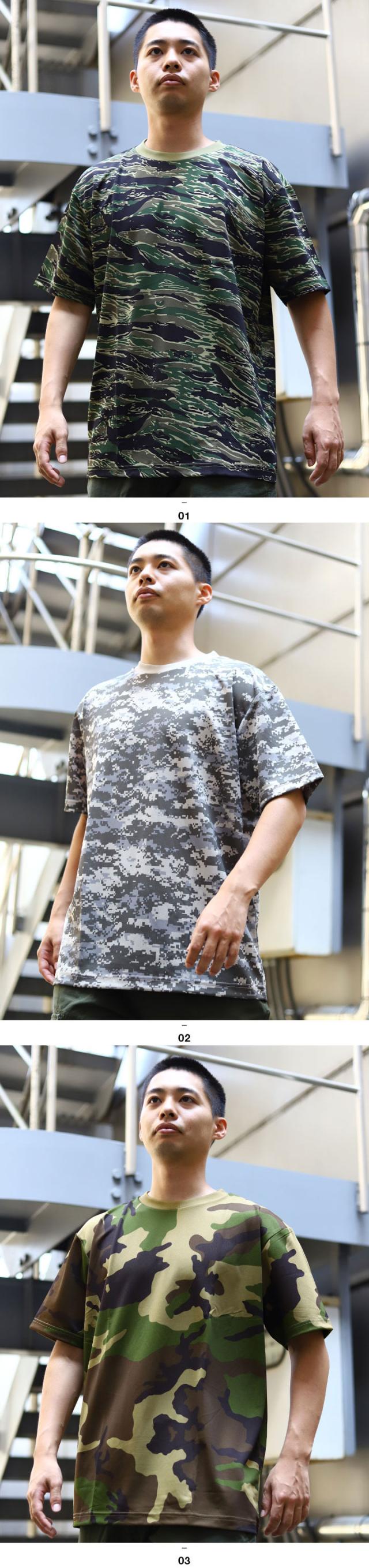 スポーツやサバゲーなどアクティブなシーンで実戦的な動きに対応し快適な着心地をキープする、迷彩柄の「速乾&UVカット」Tシャツ。