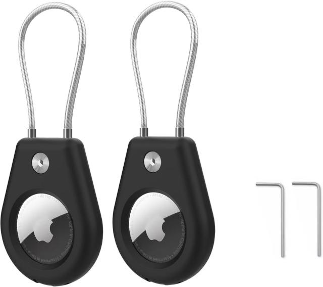 AirTag ケース キーホルダー 持ち運びに便利 キーホルダー カギ/バッグに掛ける (ブラック 2個)