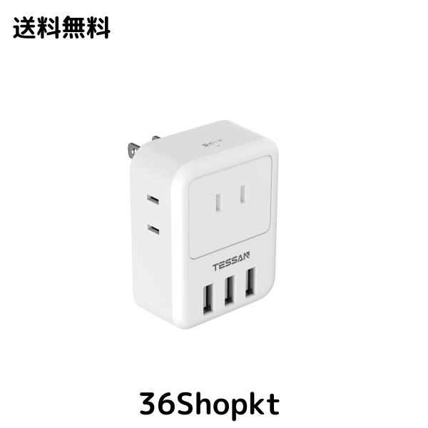 USB コンセント タップ TESSAN 電源タップ usb付き 雷ガード付 3個AC口 3つUSBポート 蛸足コンセント タコ足配線 充電タップ usb タップ