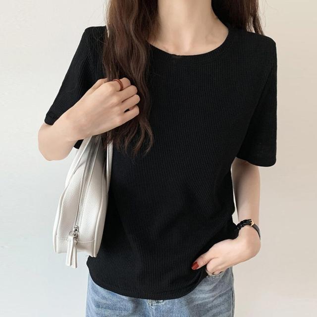 凹凸のあるワッフル生地で仕上げた半袖ベーシックtシャツです