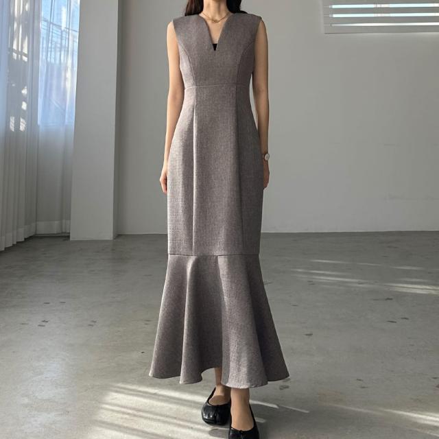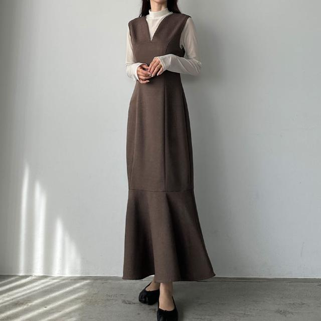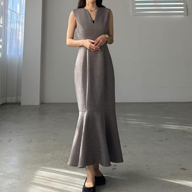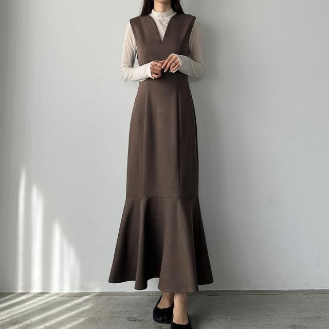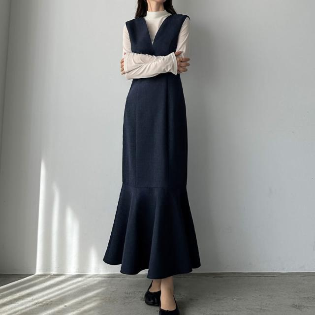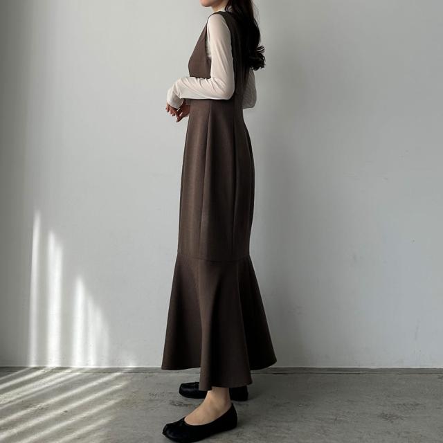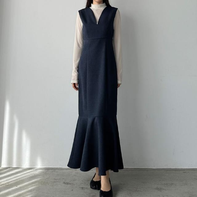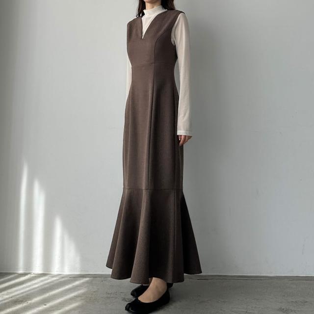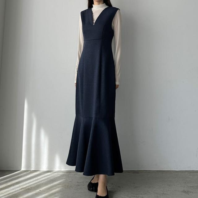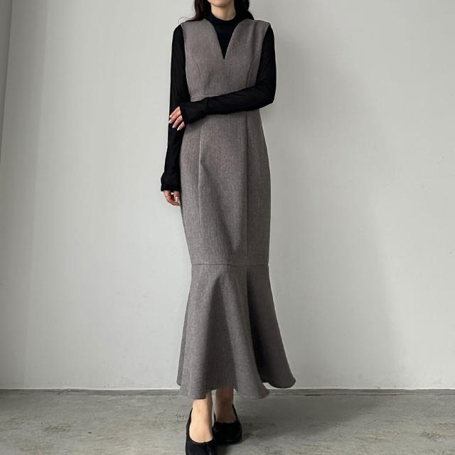 Louere 深Vネックツイードマーメイドジャンパースカート