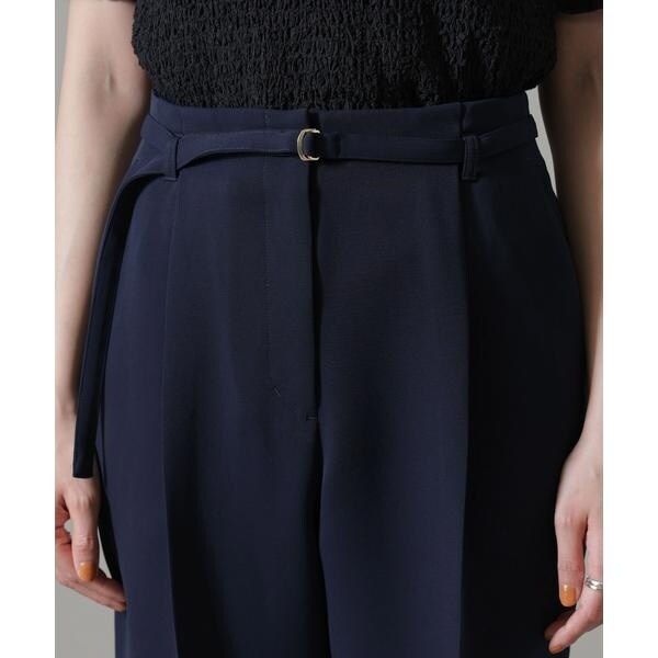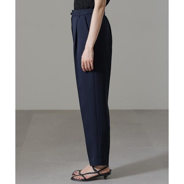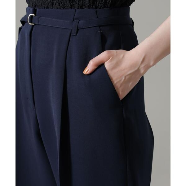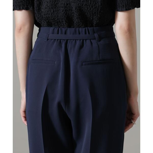イージーケアダブルクロス ベルト付きタックテーパードパンツ(セットア
